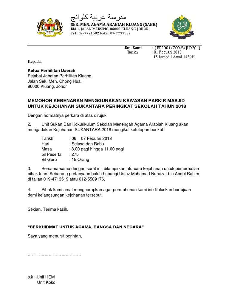 contoh surat kepada perhilitan