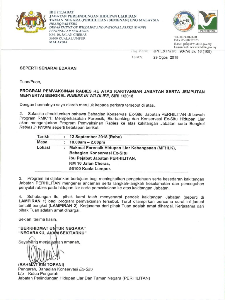 Surat Edaran Program Pemvaksinan Rabies Siri 1 2018 Pdf